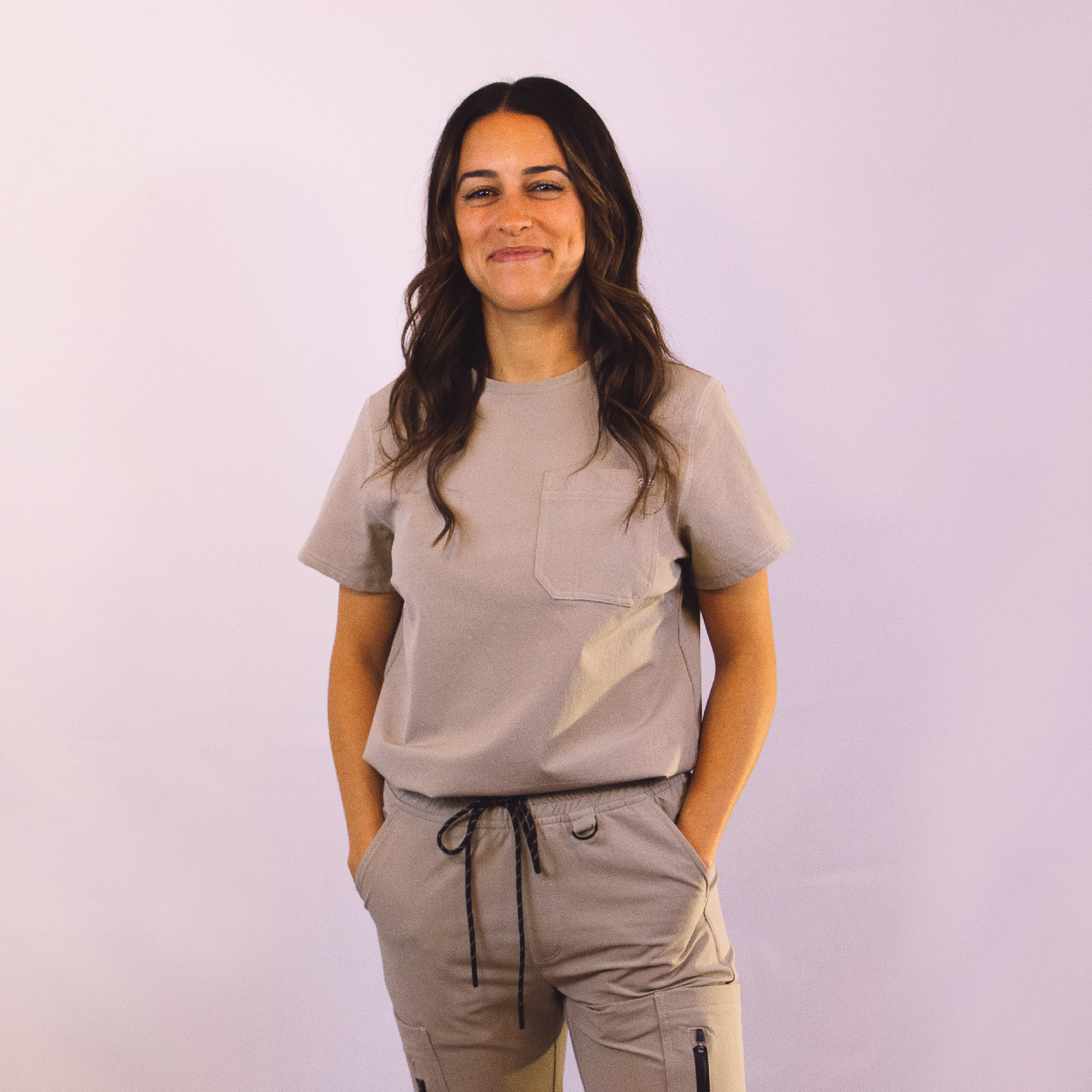 Our take on the classic crew-neck - because your work clothes should feel like what’s already in your closet. The Crew Top is a contoured fit, designed to be structured around the chest and looser around the waist for a flattering, yet comfortable fit. Made for the modern healthcare worker, our 4 sleeve chest pocket can hold pens, lanyards, and other supplies while keeping its form. No undershirt needed with this heavyweight, soft-to-the-touch nylon/elastic blend.
